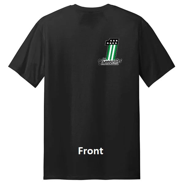 Screen printed design front and back on Gildan Heavy Cotton Black